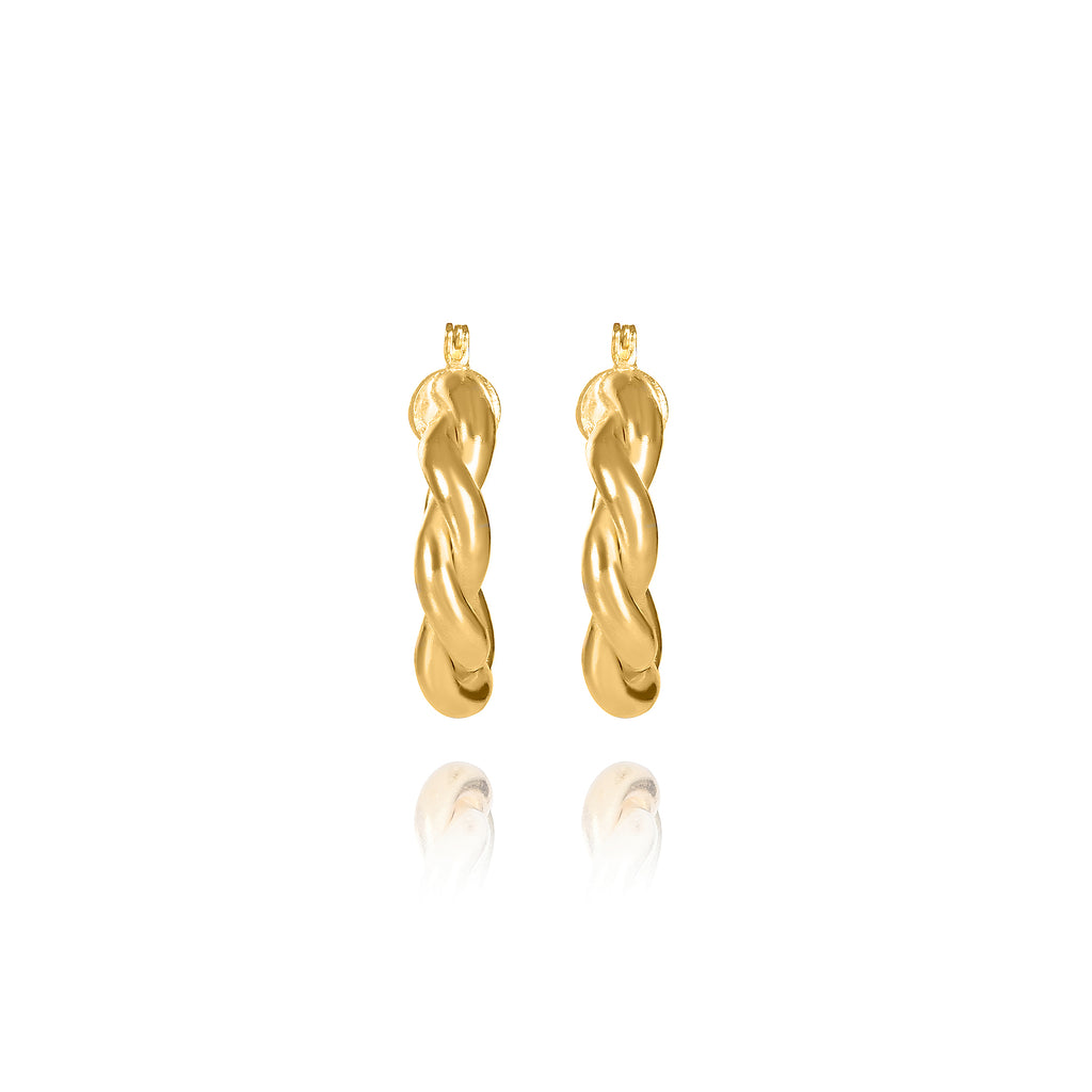 Introducing our new Tashu Twist Hoops - a stylish everyday essential. These small hoops feature two intertwined pipes of 24k gold-plated brass, creating a delicate twisted design. While not as compact as a huggie, the Tashu Twist Hoops maintain a petite, versatile size that's perfect for effortless layering.